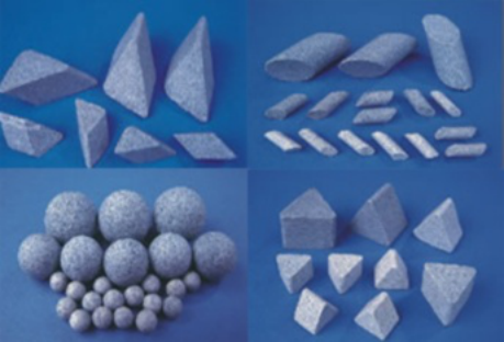 3、高鋁瓷磨料:振動、渦流、離心光飾機等輔料,研磨時利用擠壓摩擦原理,適用于各種材質工件的拋光、輕倒角、鏡面拋光、電鍍前表面細磨