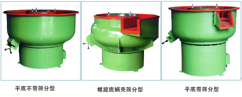 該機型為三維空間振動、低噪聲。分平底直邊帶篩分型、平底直邊不帶篩分型和螺旋底蝸殼帶篩分型。容器內(nèi)襯采用聚酯(PU)材料,設(shè)備使用壽命長。其特點為操作方便,容量大,產(chǎn)量高,工件在設(shè)備中運行軌跡連續(xù)平穩(wěn),不會劃傷磕碰工件。適用于各種金屬和非金屬件的去毛刺拋光,倒圓角等表面處理。筒體內(nèi)為了減少工作中磨塊和工件對其磨損,減少噪音,在其內(nèi)壁襯耐磨橡膠或聚氨脂。為減少噪音也可配加消音罩。